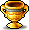 A gold cup with decorations all over it.